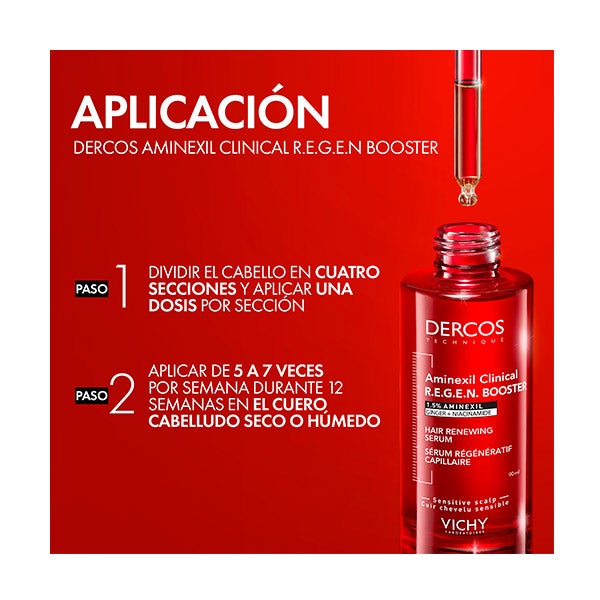 DERCOS Aminexil Clinical R.E.G.E.N. BOOSTER es el primer sérum regenerador capilar de DERCOS, cuya eficacia ha sido comprobada clínicamente tanto en hombres como en mujeres, mostrando un incremento superior a 14 000 cabellos tras 12 semanas de uso.*