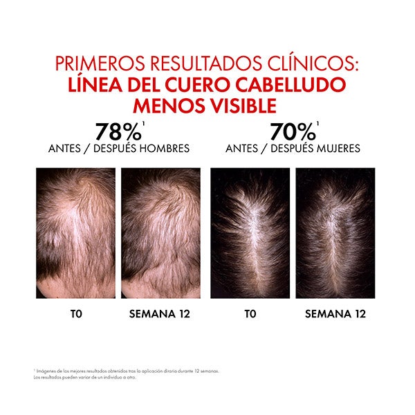 Revitaliza: Promueve la aparición de cabello nuevo con un aspecto más fuerte y saludable.