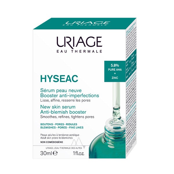ACTIVOS PRINCIPALES: 5,8% AHA PUROS [ácidos glicólico, málico y láctico] + ZINC + AGUA TERMAL DE URIAGE