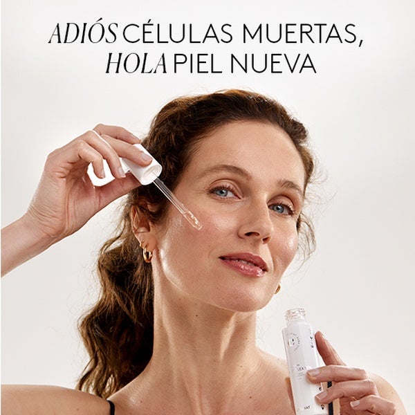 Triple Sérum Exfoliante con Ácidos Glicólico, Mandélico y Láctico, enriquecido con Niacinamida, Ácido Hialurónico y un bio-retinoide encapsulado. Su fórmula impulsa la regeneración de la piel, atenúa los signos del envejecimiento, elimina las impurezas y deja el cutis más uniforme, suave y luminoso.