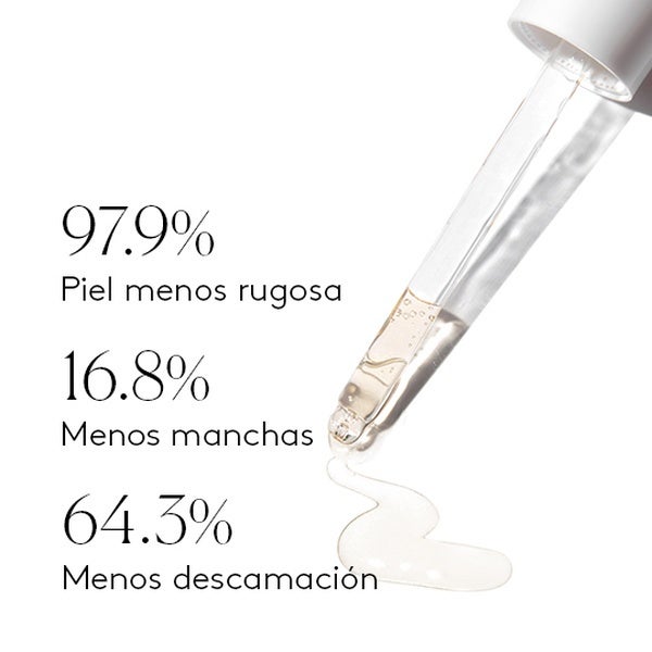 Aplica por la noche 6 gotas sobre la piel limpia. Distribuye el sérum de manera uniforme por el rostro con las yemas de los dedos. Comienza utilizándolo 1 o 2 veces por semana e incrementa la frecuencia hasta su uso diario, según la tolerancia de tu piel.