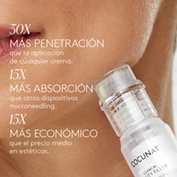 Une un sérum de máxima concentración con un aplicador de microagujas huecas, basado en la tecnología de microneedling avanzado, que potencia hasta 30 veces la absorción en comparación con una crema o sérum convencional.