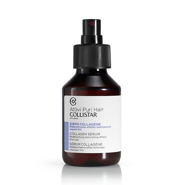 Suero en spray de textura ultraligera con Colágeno, una proteína que ayuda a aportar cuerpo y densidad al cabello fino y sin volumen, favoreciendo el incremento del grosor de la fibra capilar.