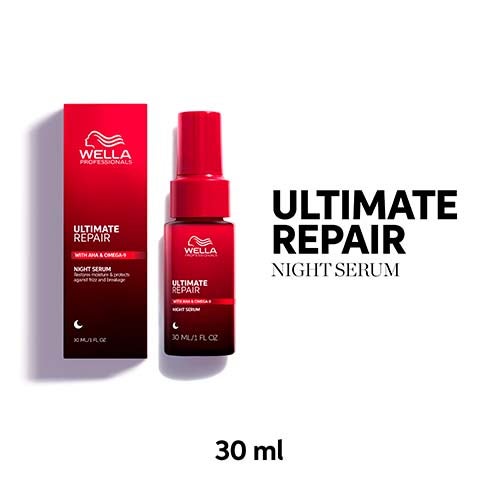 Wella Professionals Ultimate Repair es un sistema profesional de cuidado capilar desarrollado para nutrir y suavizar el cabello seco, sin brillo o con tendencia al encrespamiento. Avalado por expertos, aprovecha las horas de descanso para transformar tu melena. El Sérum Nocturno Ultimate Repair de Wella Professionals actúa mientras duermes, para que al despertar disfrutes de un cabello visiblemente reparado, hidratado y protegido, gracias a su fórmula ligera de triple acción.