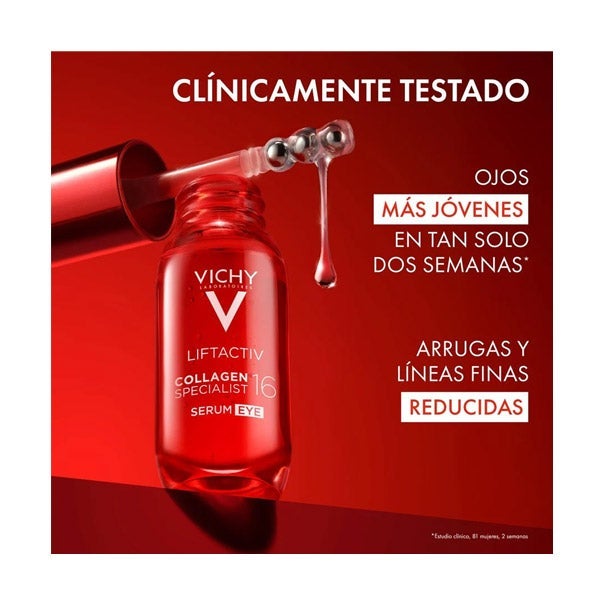 LIFTACTIV COLLAGEN SPECIALIST 16 SÉRUM OJOS es el primer tratamiento en sérum para el contorno ocular con tecnología Co-Bonding [Ramnosa + Péptidos + Maitake], diseñada para activar y conectar las distintas familias de colágeno.