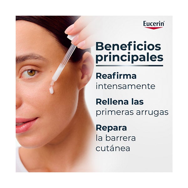 Eucerin Hyaluron-Filler Sérum Reafirmante ayuda a rellenarlas gracias al microÁcido Hialurónico, que conserva la humedad interna y reduce su apariencia. La Ectoína incrementa la resistencia de la piel, aportando una sensación de suavidad prolongada.