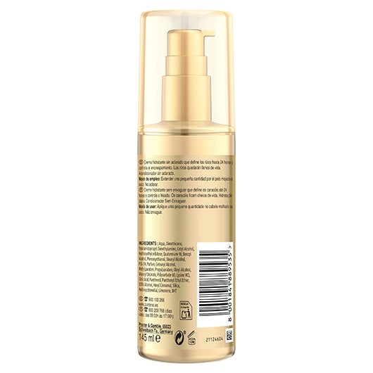 Pantene Pro-V Hidratante Capilar Diario Rizos, 145 ml Crema capilar nutritiva sin aclarado que define los rizos hasta 24 h y controla el encrespamiento. Los rizos quedarán elásticos y llenos de vida. Características principales: Crema hidratante sin aclarado que mantiene el pelo suave y brillante Hidrata, ayuda a definir los rizos y mantiene su elasticidad Controla el encrespamiento y combate la humedad Modo de empleo: Extender una pequeña cantidad por el pelo húmedo o seco. No aclarar. Ideal todo tipo de pelo rizado