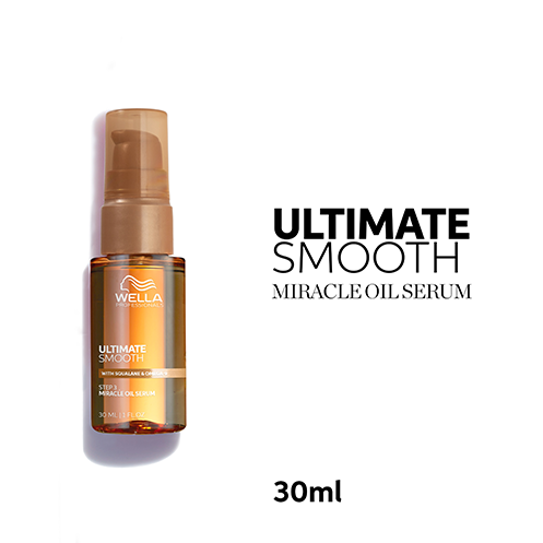 El aceite capilar Miracle Oil Serum de la gama Ultimate Smooth de Wella Professionals se integra en una rutina experta de cuidado capilar que busca aportar nutrición intensa y suavidad al cabello seco, encrespado y apagado. Este sérum con textura oleosa actúa tanto en la superficie como en el interior de la fibra capilar, dejando el cabello visiblemente más liso y reluciente. Su acción nutre en solo 30 segundos, ofreciendo una sensación de sedosidad que perdura hasta 3 días.