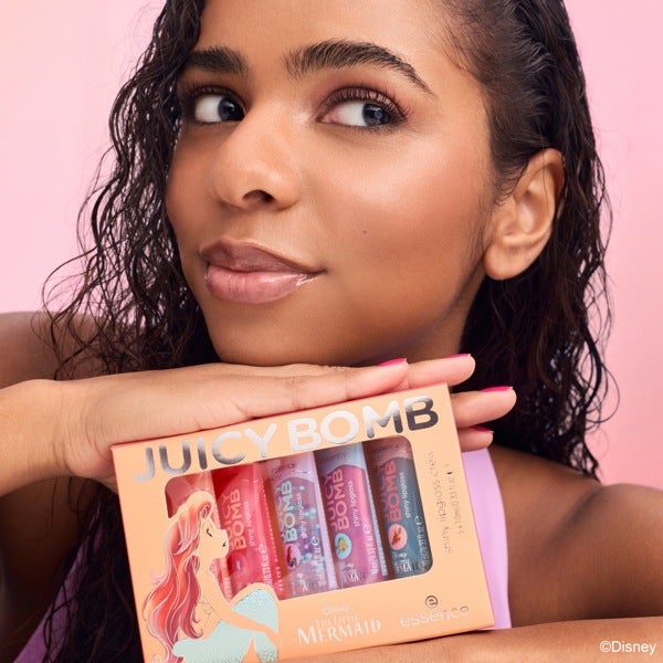 Haz que tus labios resplandezcan como joyas marinas con el set de brillos de labios ESSENCE JUICY BOMB inspirado en La Sirenita de Disney. Este adorable conjunto reúne cinco tonos de ensueño: desde un coral suave, rosado y violeta con destellos luminosos, hasta un brillo transparente con perlas multicolor y un azul claro con sutil efecto voluminizador. Cada color desprende un aroma exótico, evocando frutas como melocotón, maracuyá, mango, guayaba y coco, para dar un toque frutal y veraniego a tus labios.