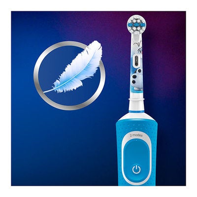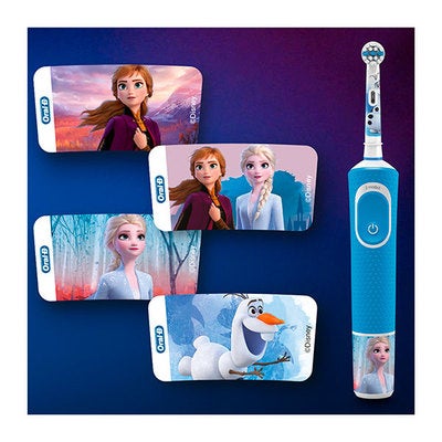 El cepillo eléctrico de Oral-B Kids para niños mayores de 3 años combina la diversión de Frozen 2 de Disney con la limpieza suave y eficaz de un cepillo de dientes Oral-B recomendado por dentistas. Con un modo sensible único para niños, este cepillo limpia los dientes con suavidad. Elimina más placa que un cepillo de dientes manual normal. Se incluyen cuatro pegatinas temáticas de Frozen 2 para personalizar el mango.