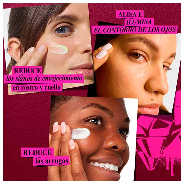Tras su uso, la piel luce más tersa, uniforme y resplandeciente. Las líneas finas y arrugas se atenúan visiblemente, mientras que la zona del contorno de ojos se percibe más relajada y luminosa.