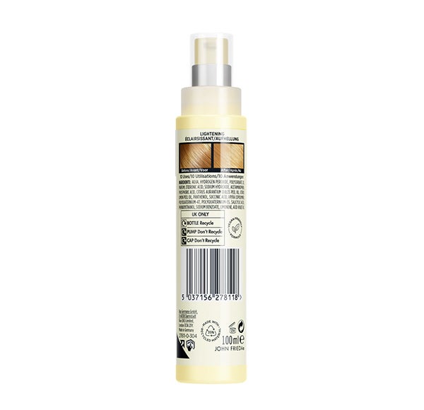 Realza los cabellos rubios hasta dos tonos más claros con este Spray Aclarante capilar.