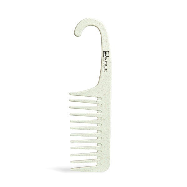 Este peine es ideal para usar en la ducha, gracias a sus púas amplias elaboradas con fibras naturales y a su diseño curvado que facilita colgarlo en cualquier lugar.