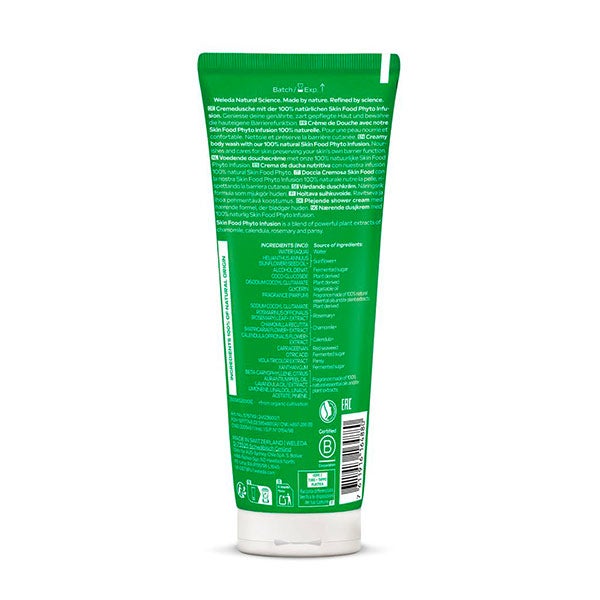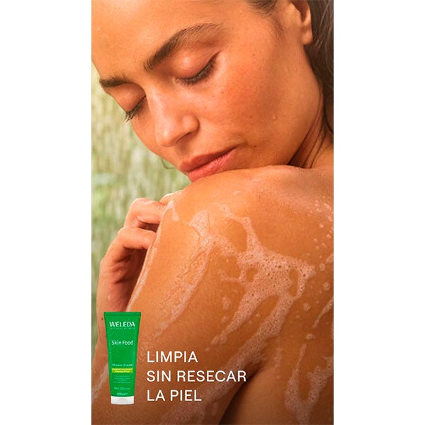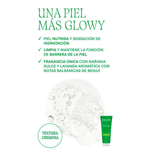 El gel de ducha Skin Food en textura cremosa ofrece una limpieza delicada mientras brinda nutrición profunda. Su fórmula, basada en la reconocida línea Skin Food, contiene aceites vegetales y extractos botánicos que ayudan a mantener el equilibrio natural de la piel.