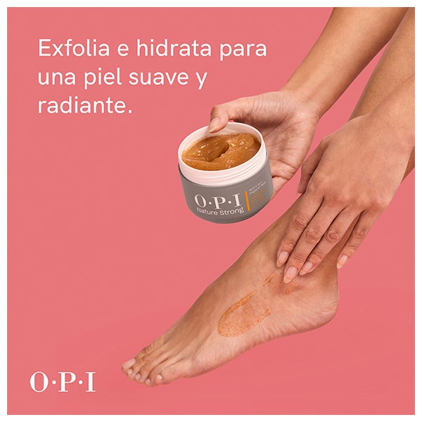 Este exfoliante suave de la línea Nature Strong Skincare de OPI, formulado con la exclusiva MoodBloom Scent Technology™, contribuye a eliminar las células muertas y a revitalizar la piel gracias a sus componentes hidratantes.