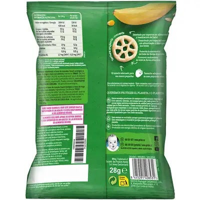 - Elaborado con cereales ecológicos: A base de trigo y maíz con plátano.