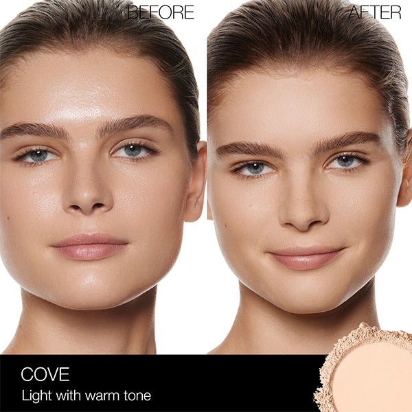 Para lograr un acabado mate de aspecto natural y sedoso, aplica los polvos por todo el rostro con la brocha #15 Precision Powder Brush. Puede utilizarse solo o encima de la base para prolongar el maquillaje hasta 24 horas.