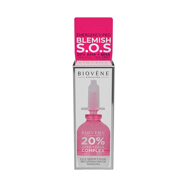 S.O.S Emergency Blemish-Recovery sérum facial es un tratamiento formulado con ácidos AHA + BHA de acción exfoliante y aceite orgánico de Árbol de Té, pensado especialmente para pieles mixtas y grasas con tendencia a las imperfecciones, los puntos negros y la obstrucción de poros.