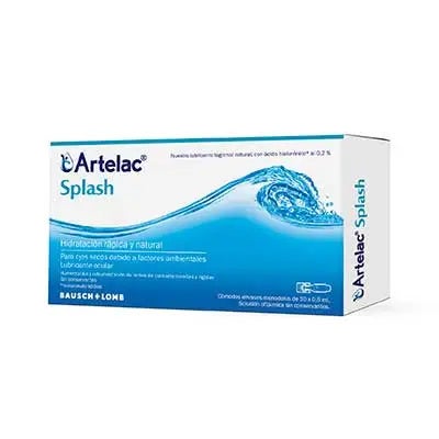 Artelac® Splash es un colirio humectante que proporciona hidratación instantánea y natural a los ojos que se sienten cansados y en entornos agresivos. Para síntomas de ojo seco debido a factores ambientales como el uso prolongado de pantallas el aire acondicionado, la calefacción y el humo del tabaco, así como el viento o el uso de lentes de contacto. Sin conservantes. Apto para lentillas.