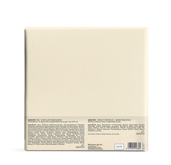Este set incluye la crema de día splendor y el serum iluminador antioxidante como obsequio.