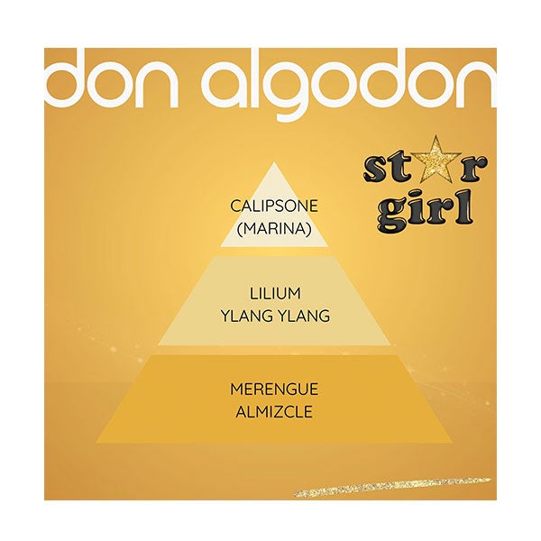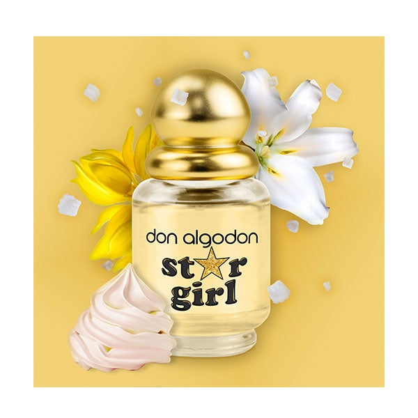 Resplandece como una estrella con la Eau de Toilette Star Girl de Don Algodón. Esta fragancia marina floral gourmand de 30 ml te envuelve con un encanto único, haciéndote sentir especial en cada momento. Sus acordes de calipsone, lilium, ylang ylang, merengue y almizcle crean el aroma ideal para mujeres luminosas y seguras de su fortaleza interior.