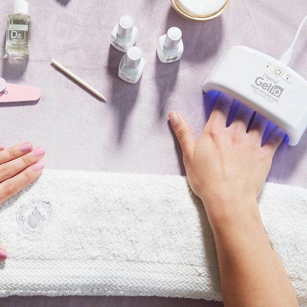 - Color: aplica una fina capa de esmalte Gel iQ y sécala durante 30 segundos en la lámpara UV/LED. Repite con una segunda capa del mismo modo.