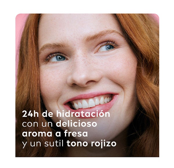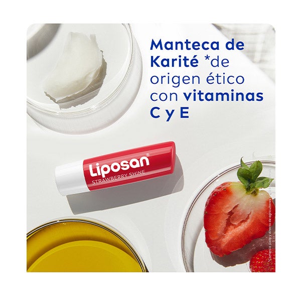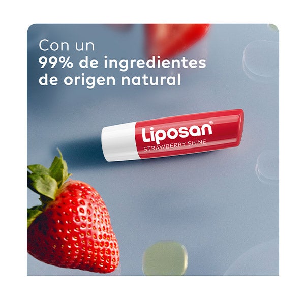 Tu elección es Liposan Strawberry Shine. Este bálsamo con fragancia de fresa brinda un suave brillo con tono rojizo mientras ayuda a resguardar los labios de la sequedad, el viento y el frío.