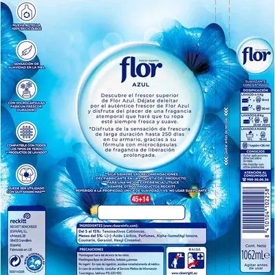 Flor Azul Suavizante Concentrado para la ropa - 59 lavados Descubre el frescor superior con Flor Azul Suavizante Concentrado para la ropa
