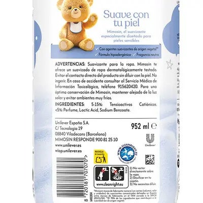 Legado de Cuidado de Mimosin: Con más de 40 años de experiencia en el cuidado de la ropa, Mimosin es el suavizante de confianza que ha estado cuidando tus prendas durante décadas.