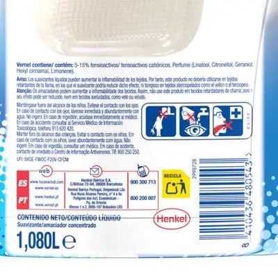 Vernel Fresh Control Explosión de Frescor combate eficazmente los malos olores, como el humo, los olores de los alimentos o el sudor, especialmente en tejidos sintéticos y mixtos. Además de mantener la ropa increíblemente suave, la tecnología de perfume patentada con moléculas de enfriamiento garantiza un experiencia más prolongada y agradable de fragancia intensa y multisensorial.