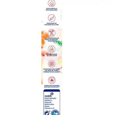 Un buen equilibrio entre flores y frutas que dejerá una sensación de perfume duradeeera. Además, es compatible con todos los tipos de tejido y productos de lavado y la nueva botella es 100% reciclable.