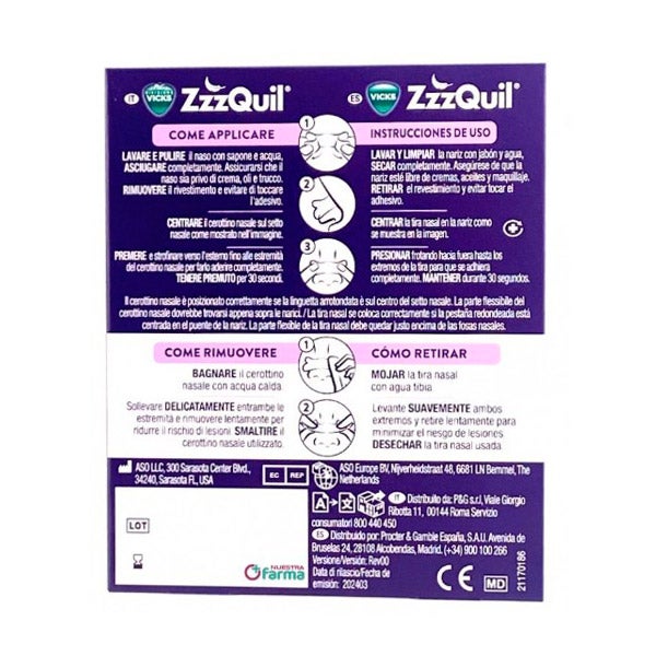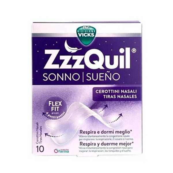 ZZZQUIL Sueño Tiras Nasales han sido creadas para favorecer una respiración más libre y contribuir a un descanso nocturno profundo al disminuir los ronquidos y optimizar la entrada de aire por la nariz.