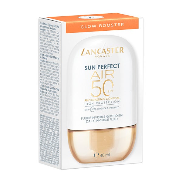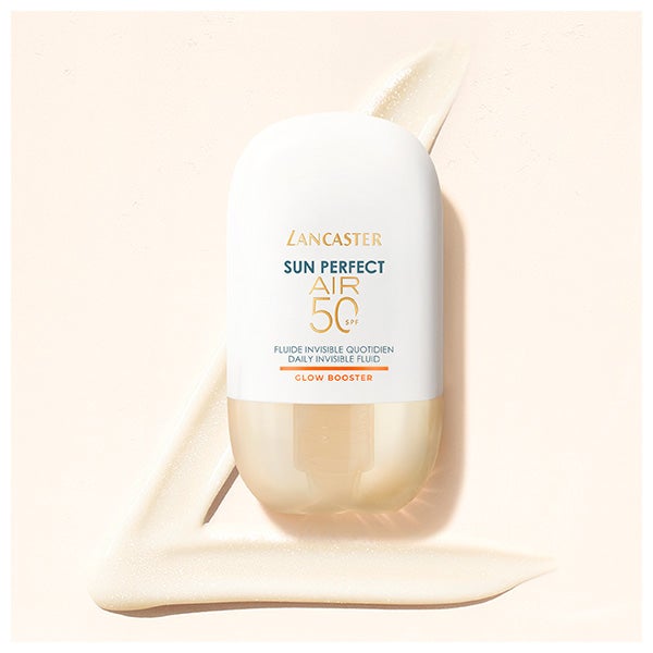 Lancaster Sun Perfect AIR Daily Invisible Fluid SPF50 Glow Booster redefine la protección UV diaria con una fórmula innovadora que combina una protección solar invisible y una corrección específica de los problemas de la piel, potenciada por los activos derm-skin. Especialmente formulado para pieles apagadas y de aspecto cansado, expuestas a los factores urbanos, este protector solar Lancaster fluido ofrece una protección diaria de alto rendimiento con beneficios potenciadores de la luminosidad.