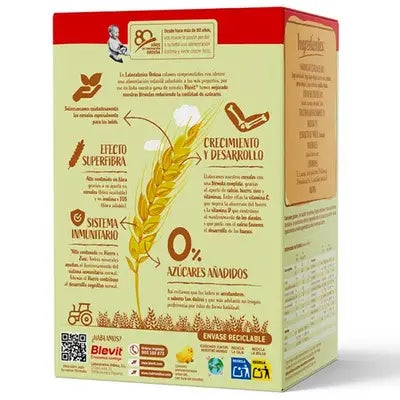 Aporte de vitaminas y minerales: Blevit® Superfibra 8 CEREALES Y FRUTAS es una fuente natural de vitaminas y minerales esenciales para el crecimiento y desarrollo saludable de tu pequeño.