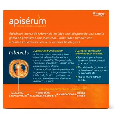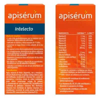 Apiserum Intelecto favorece el rendimiento intelectual, concentración y memoria.