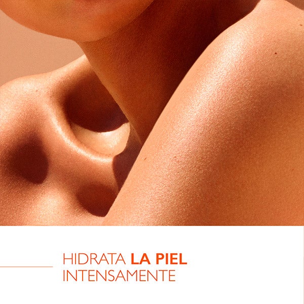 Aplica generosamente sobre el cuerpo tras la exposición solar.