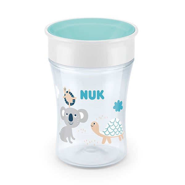 Sus asas ergonómicas y suaves ayudan a mejorar el agarre. El vaso “mágico” evita derrames gracias a un disco de silicona que ofrece un sellado completo.