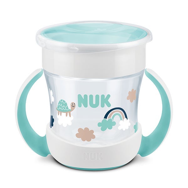 Diseño 360°: permite a los niños beber cómodamente desde cualquier punto del borde; sin fugas: el cierre automático bloquea el paso del líquido cuando se deja de beber, evitando salpicaduras; Flujo continuo: borde de silicona flexible con válvula de aire que controla la salida de la bebida; Fácil de sujetar: asas ergonómicas adaptadas a las manos del bebé; tapa protectora que mantiene el borde limpio; apta para lavavajillas, fabricada en plástico libre de BPA; indicada a partir de los 6 meses; fácil de desmontar.