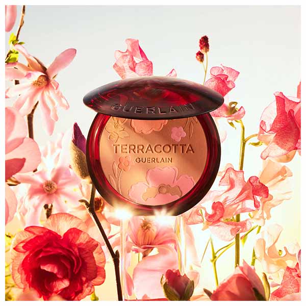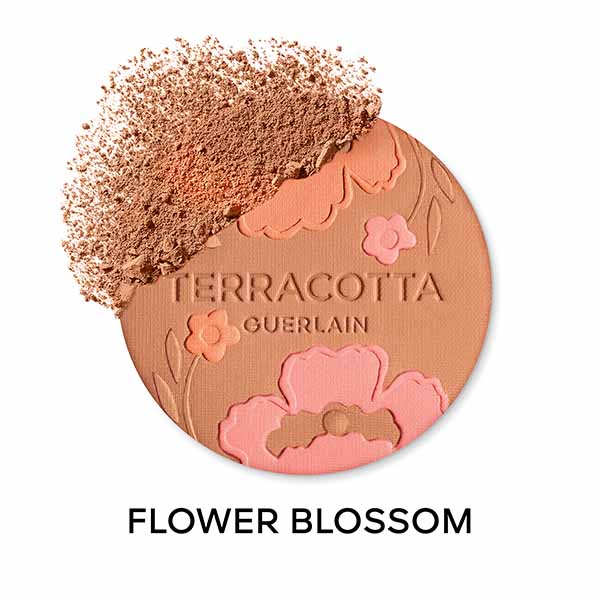 Terracotta Flower Blossom, decorado con un elegante diseño floral, revela una tez luminosa con un sutil rubor, logrando un aspecto fresco, saludable y naturalmente dorado.