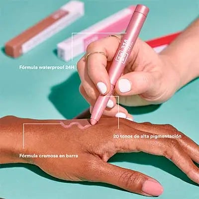 Este producto versátil permite cambiar tus looks combinando tus sticks favoritos. Puede usarse como sombra de ojos, delineador o lápiz de cejas. Con un sacapuntas incorporado, puedes obtener líneas precisas y definidas, ofreciendo una gran versatilidad en su uso. Su fórmula cremosa se fija casi al instante y dura hasta 24 horas.