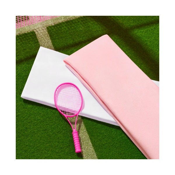 Coloca una de las bandas sobre tu cabello para mantener el peinado bien sujeto. Escoge entre la versión blanca o la rosa claro para combinar con tu estilo y lograr un toque deportivo con total naturalidad.