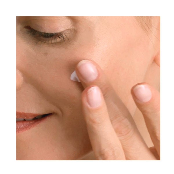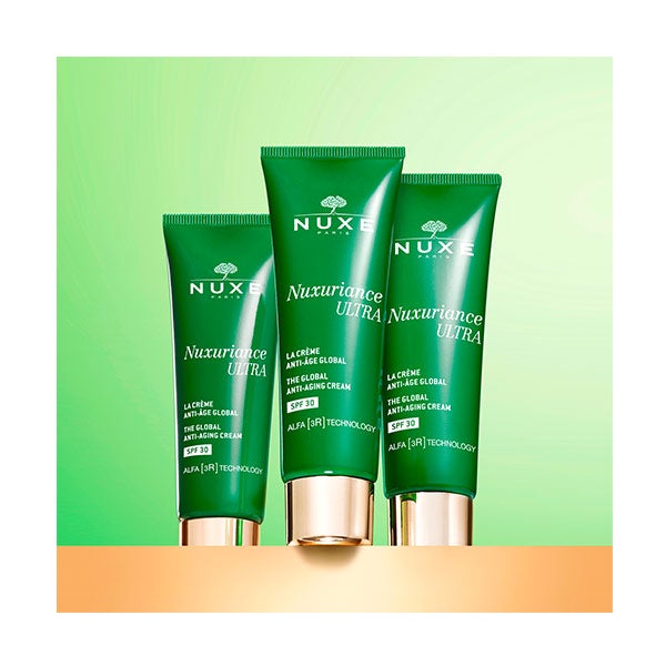 Para finalizar, realiza suaves golpecitos con las yemas de los dedos por todo el rostro para reavivar la luminosidad de la piel. Úsala por la mañana, preferiblemente después del sérum Nuxuriance Ultra.