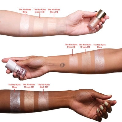 The No-Rules Bling no solo se adapta a múltiples zonas del rostro, sino que también es universal en cuanto a tono. Su color blanco brillante con matices perlados se transforma sutilmente al contacto con cada tipo de piel, aportando un brillo único y personal.