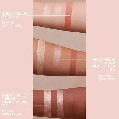 Diseñado para acompañarte a todas partes, el No-Rules Stick Highlighter se presenta en un envase compacto y resistente que puedes llevar en tu bolso, mochila, riñonera o incluso en el bolsillo del pantalón. Es perfecto para viajes, días de trabajo, escapadas o retoques exprés sea donde sea.