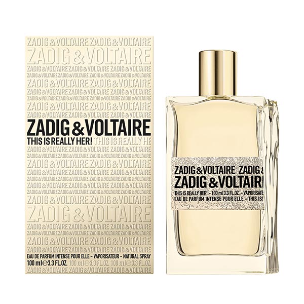 This Is Really Her! es el más reciente e intenso perfume para mujer de ZADIG&VOLTAIRE. Representa un nuevo y audaz episodio en la historia de amor de This Is!, un aroma que transita con facilidad del día a la noche y de nuevo al amanecer, igual que una chaqueta metálica de Zadig preparada para cualquier ocasión. Invita a una aventura sin límites, allí donde te lleve la vida.