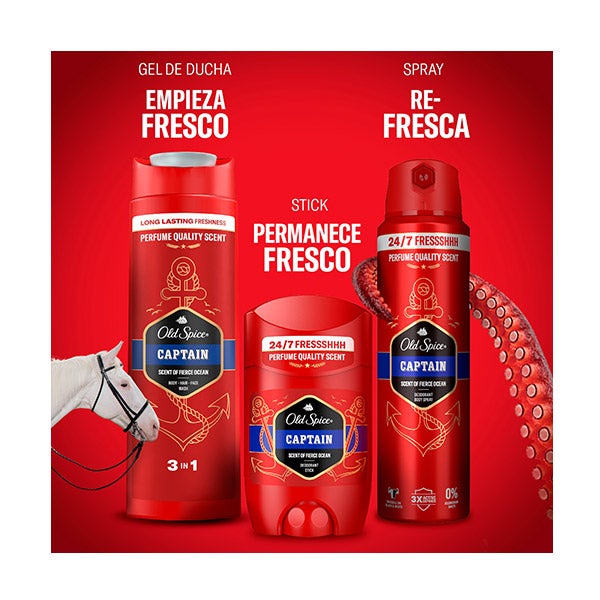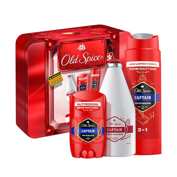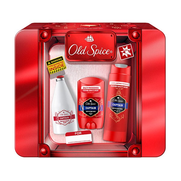 ¿Buscas el regalo ideal para ese hombre que avanza con confianza y porta un aroma inconfundible? ¡Aquí lo tienes! El set en caja metálica contiene desodorante en barra, gel de ducha y loción aftershave para hombre Captain, presentados en una resistente caja metálica de Old Spice que puede reutilizarse para guardar tus objetos personales o secretos masculinos. No hay margen de error con la fragancia Captain de Old Spice: una mezcla que evoca las poderosas olas marinas, el sándalo y el toque cítrico de la bergamota, dando vida al auténtico espíritu del capitán de la frescura.