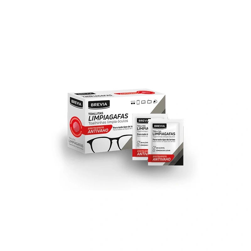 Las toallitas limpiagafas BREVIA de uso doméstico limpian de modo eficaz todo tipo de gafas de vidrio y materiales sintéticos. Con un alto poder desengrasante, nueva fórmula sin alcohol, con efecto repelente del agua y polvo, actúa y seca rápidamente.