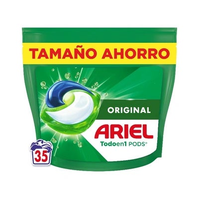 El Ariel Todo en Uno Pods 35 Cápsulas es una opción ideal para quienes buscan la máxima comodidad en cada lavado sin sacrificar la eficacia. Su fórmula avanzada permite una limpieza profunda, protección de colores y cuidado de los tejidos en una sola cápsula. Gracias a su formato predosificado, estas cápsulas eliminan la necesidad de medir y facilitan el proceso de lavado, ofreciendo una experiencia completa y conveniente.