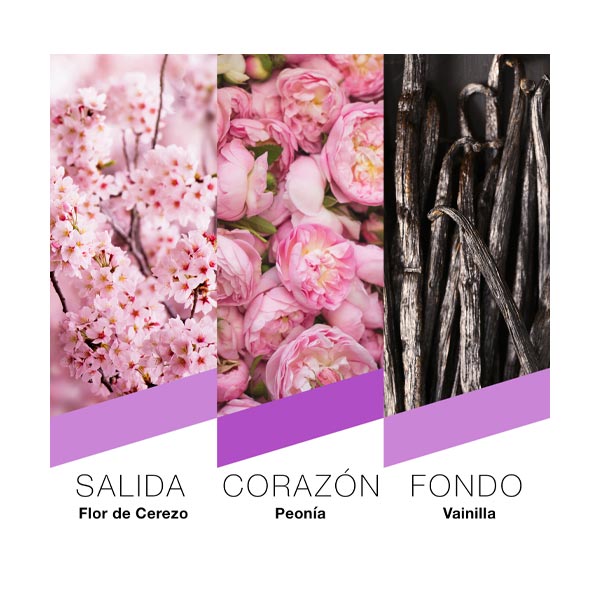Recorra las calles de Tokyo con esta fragancia frutal y floral que refleja el espíritu primaveral de la metrópoli. Este Eau de Parfum femenino combina el encanto de la Flor de Cerezo y la Pera, aportando una frescura delicada que se transforma en un corazón refinado y luminoso de Peonía, Ciclamen y Rosa. La composición se completa con notas ambarinas y almizcladas que otorgan una calidez envolvente a la elegante feminidad de Tokyo.