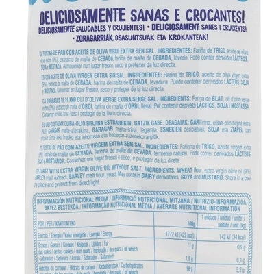 Las tostas de pan "MARIñEIRAS" Natural con Aceite de Oliva VE SIN SAL son una opción sabrosa, saludable y versátil para quienes buscan una alternativa natural al pan tradicional. Elaboradas con ingredientes 100% naturales y sin sal añadida, estas tostas son ideales tanto para disfrutar como snack, como para formar parte de tus comidas diarias, dentro y fuera de casa.